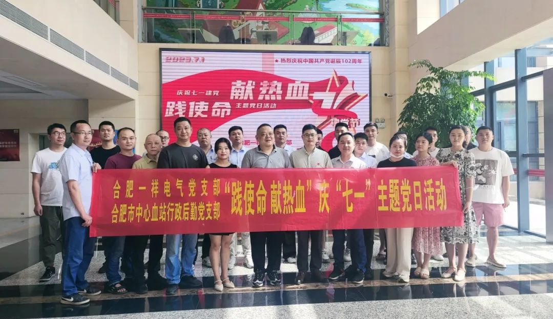 為慶祝中國共產(chǎn)黨成立102周年,激勵黨員大力弘揚偉大建黨精神,“奉獻、友愛、互助、進步”,充分發(fā)揮黨員先鋒模范作用。2023年7月1日,合肥一祥電氣技術(shù)有限公司黨支部聯(lián)合合肥市中心血站行政后勤黨支部共同開展了”踐使命 獻熱血”一一慶”七一”主題黨日活動,用熱血詮釋初心使命,獻禮黨的生日。用實際行動奉獻愛心,傳播大愛和溫暖。